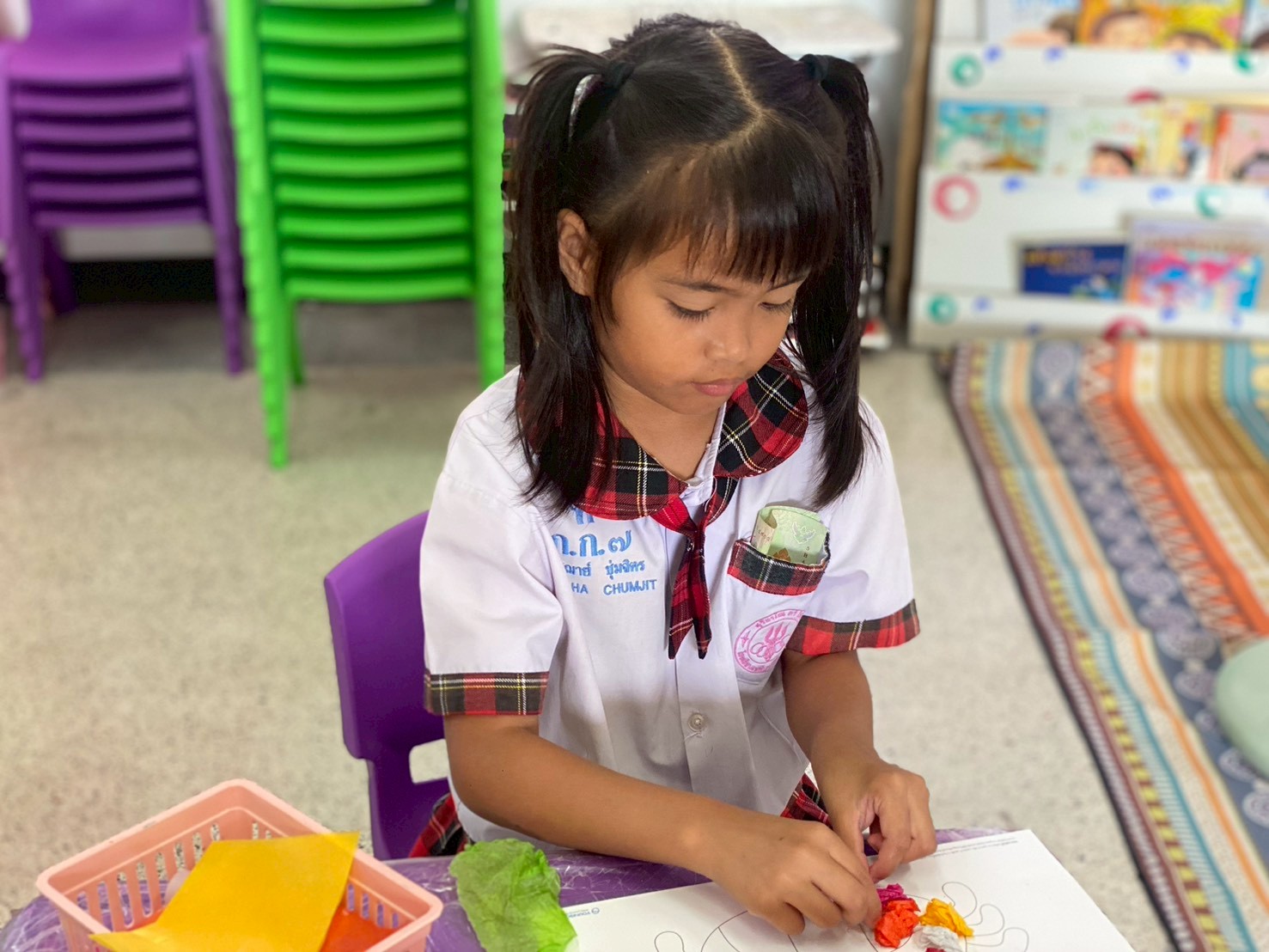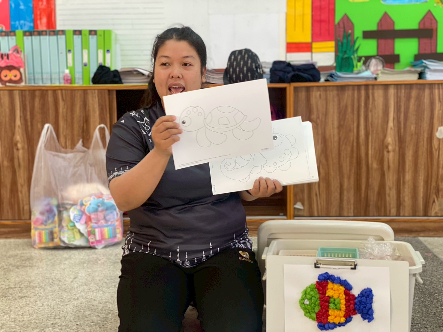 กิจกรรมดังกล่าวช่วยฝึกกล้ามเนื้อมัดเล็ก การประสานงานระหว่างมือและสายตา เสริมสร้างสมาธิ ความมั่นใจ และการแสดงออกทางความคิดอย่างอิสระ อีกทั้งยังเปิดโอกาสให้เด็กได้แลกเปลี่ยนความคิดเห็นและเรียนรู้ร่วมกันในบรรยากาศที่สนุกสนาน เป็นกันเอง และเหมาะสมกับวัย ส่งผลให้เด็กเกิดความสุขในการเรียนรู้และเห็นคุณค่าของงานศิลปะมากยิ่งขึ้น