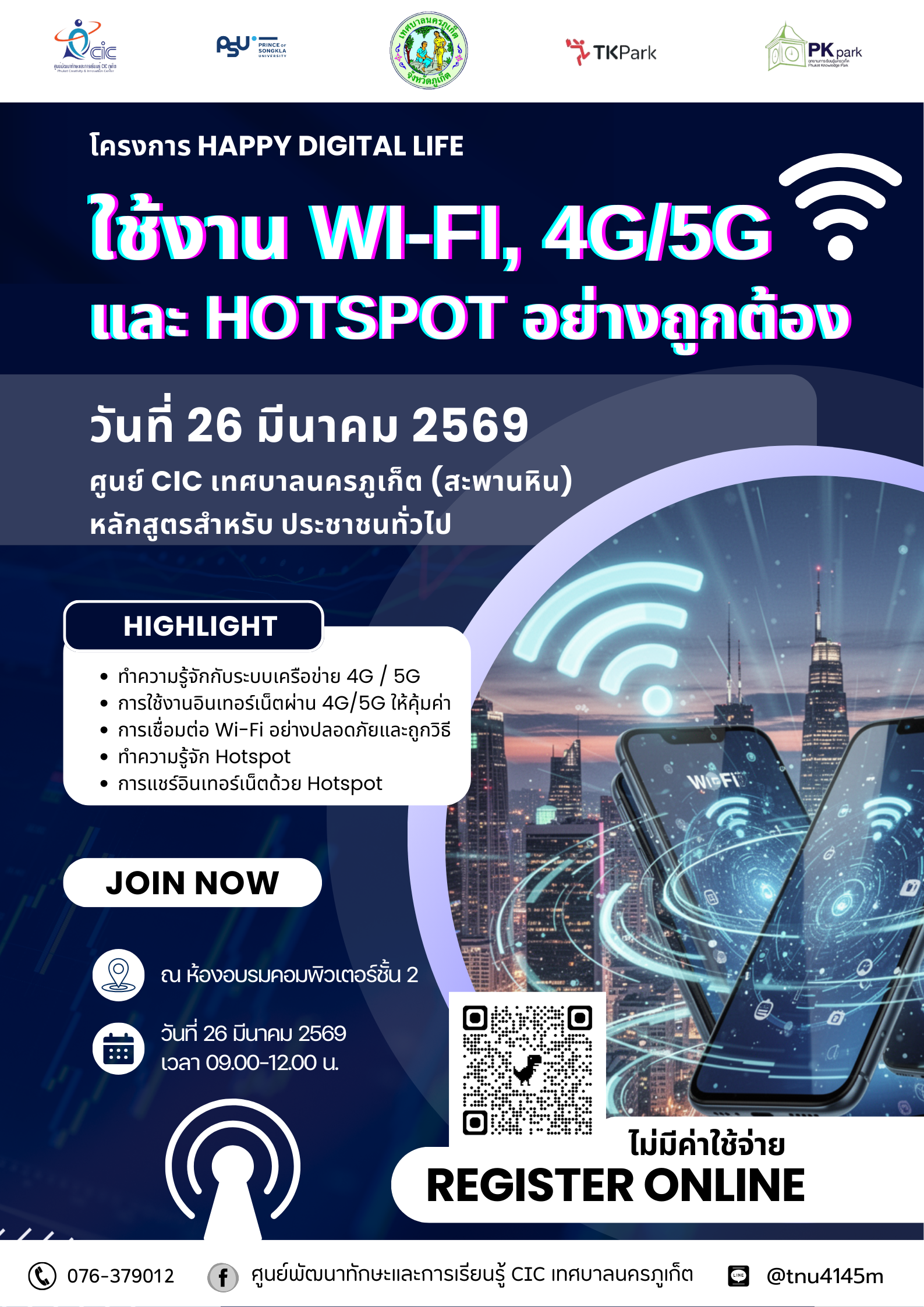 • วันพฤหัสบดีที่ 26 มี.ค. 69 หัวข้อ “ใช้งาน Wi-Fi, 4G/5G และ Hotspot อย่างถูกต้อง”