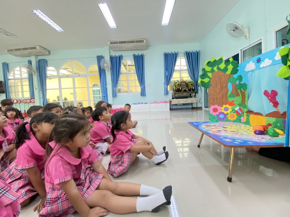 2. กิจกรรมเล่านิทานหุ่นมือ เป็นกิจกรรมที่ส่งเสริมจินตนาการและความคิดสร้างสรรค์ของเด็ก ผ่านการรับฟังเรื่องราวที่ถ่ายทอดด้วยสื่อหุ่นมือ ซึ่งช่วยให้เด็กเกิดความสนใจและมีส่วนร่วมมากยิ่งขึ้น