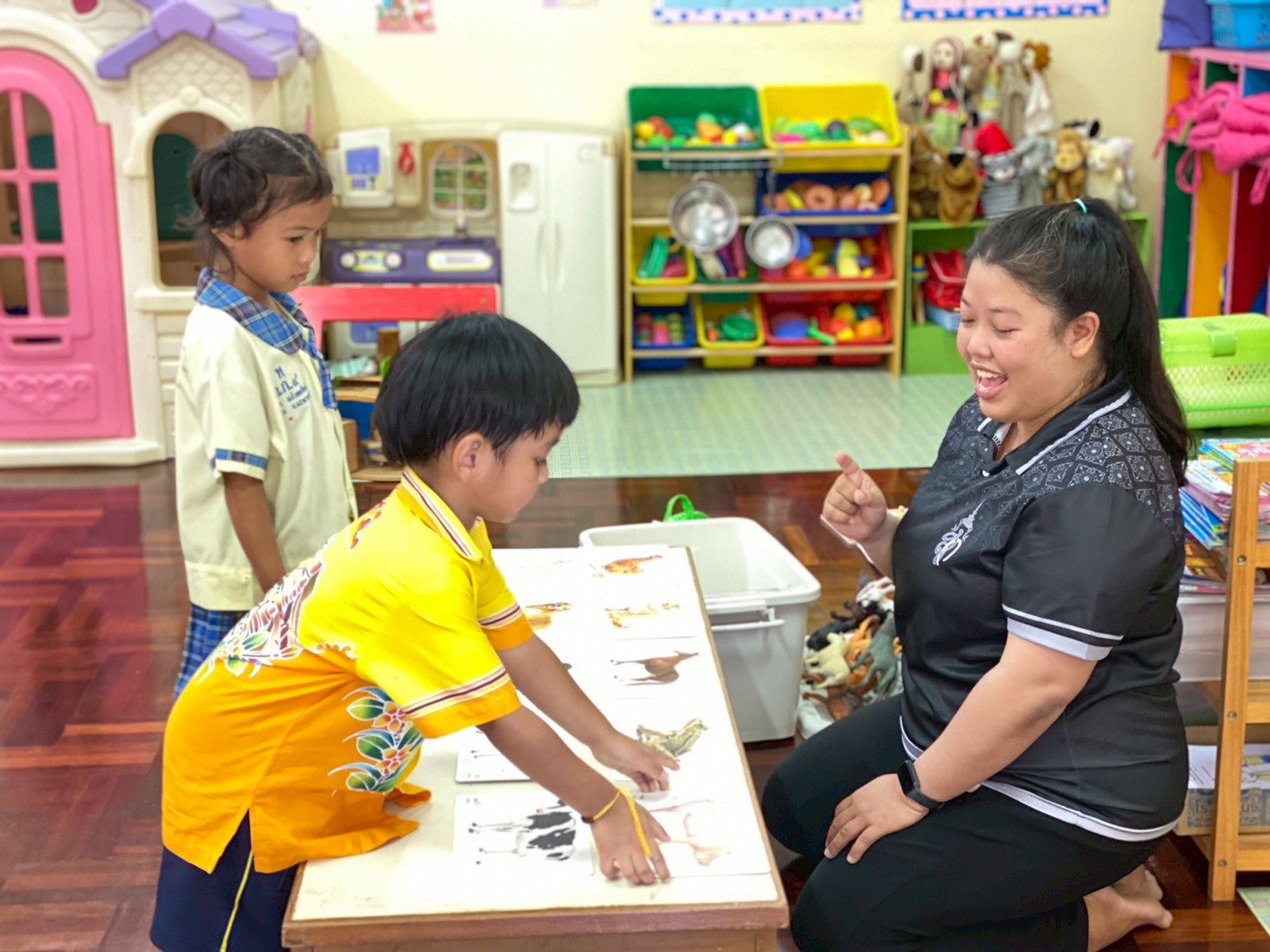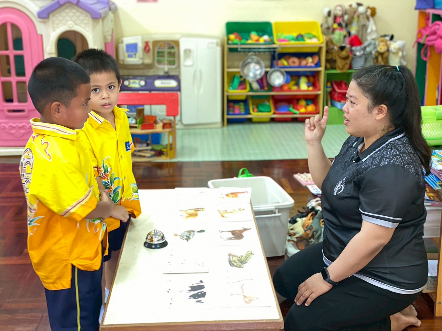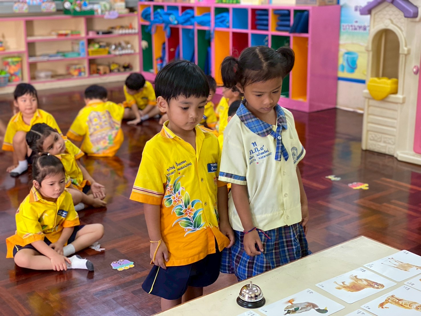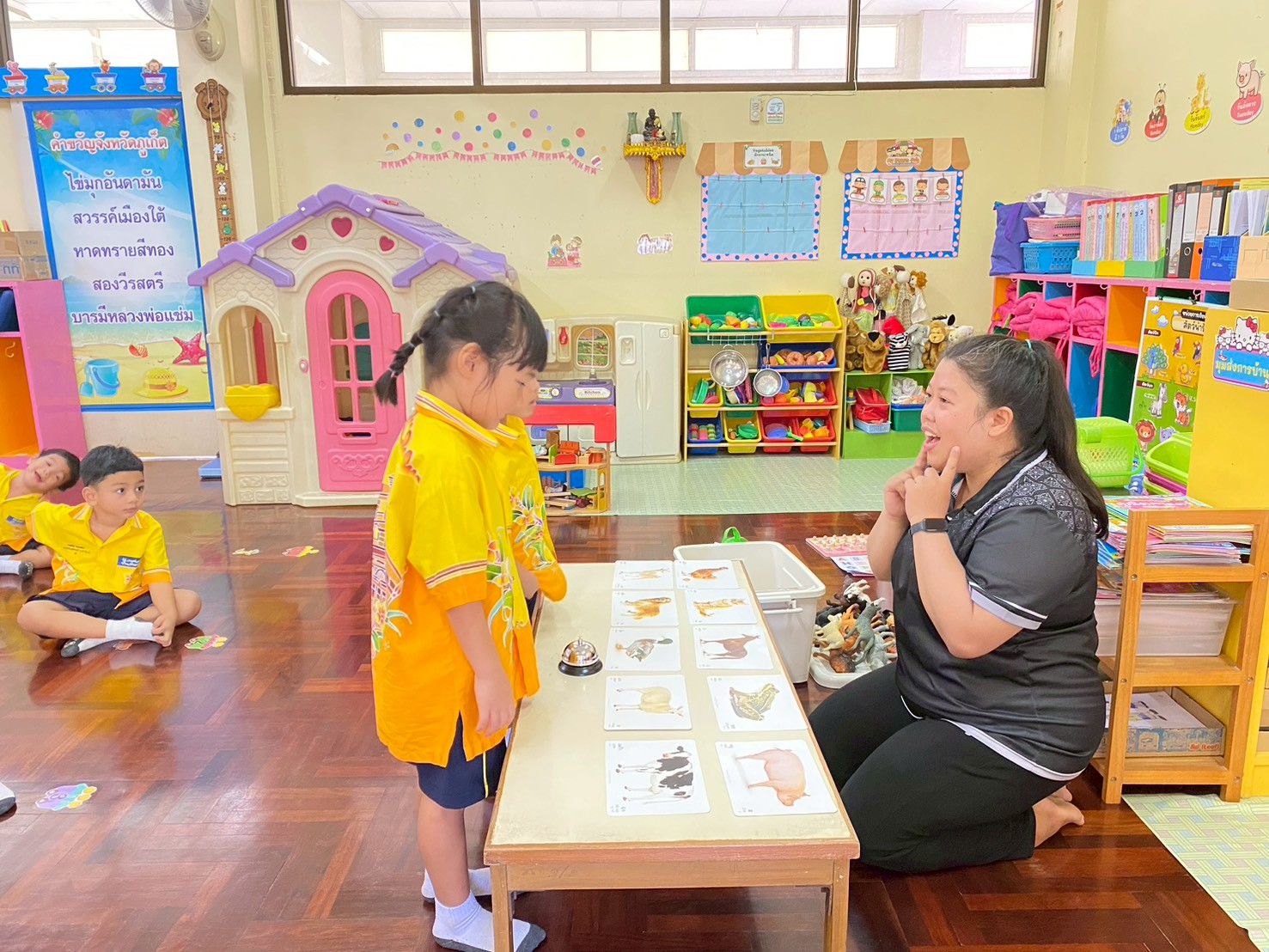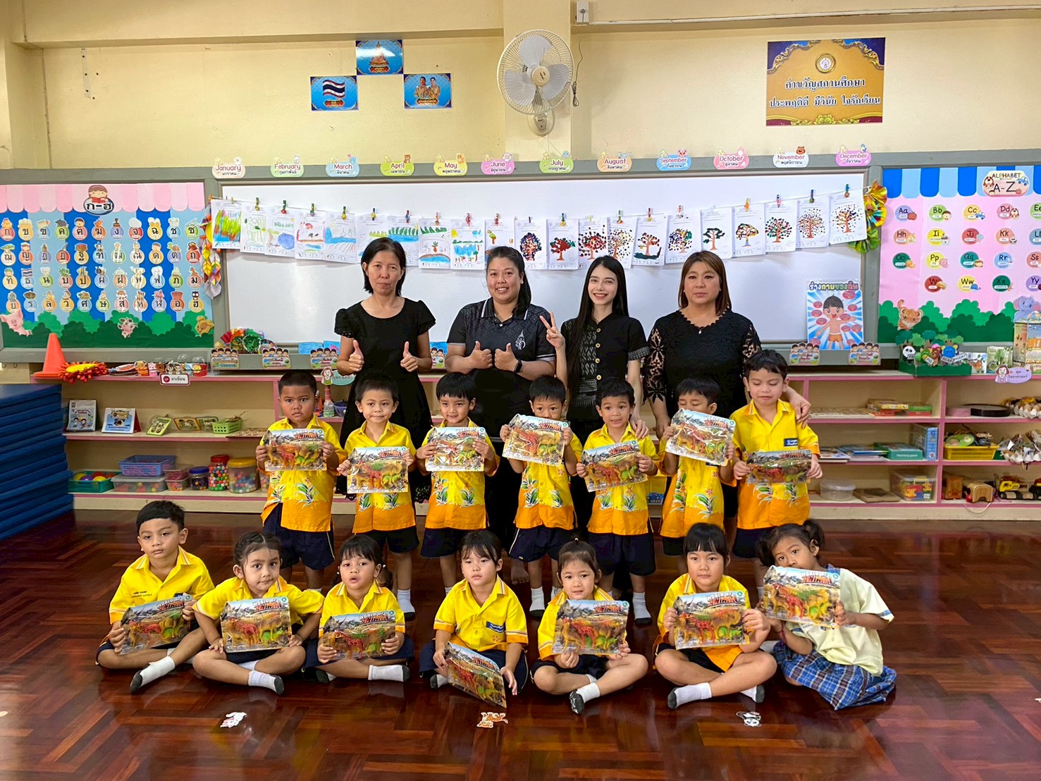ร่วมกับนักเรียน ระดับชั้นอนุบาล 1 โรงเรียนเทศบาลบ้านสามกอง (ขุนวิเศษนุกูลกิจอุทิศ) เพื่อส่งเสริมการเรียนรู้ภาษาอังกฤษขั้นพื้นฐานให้กับเด็กปฐมวัย ผ่านกระบวนการเรียนรู้ที่สนุก มีส่วนร่วม และเหมาะสมกับวัย โดยมีจุดประสงค์หลักดังนี้ ![]()