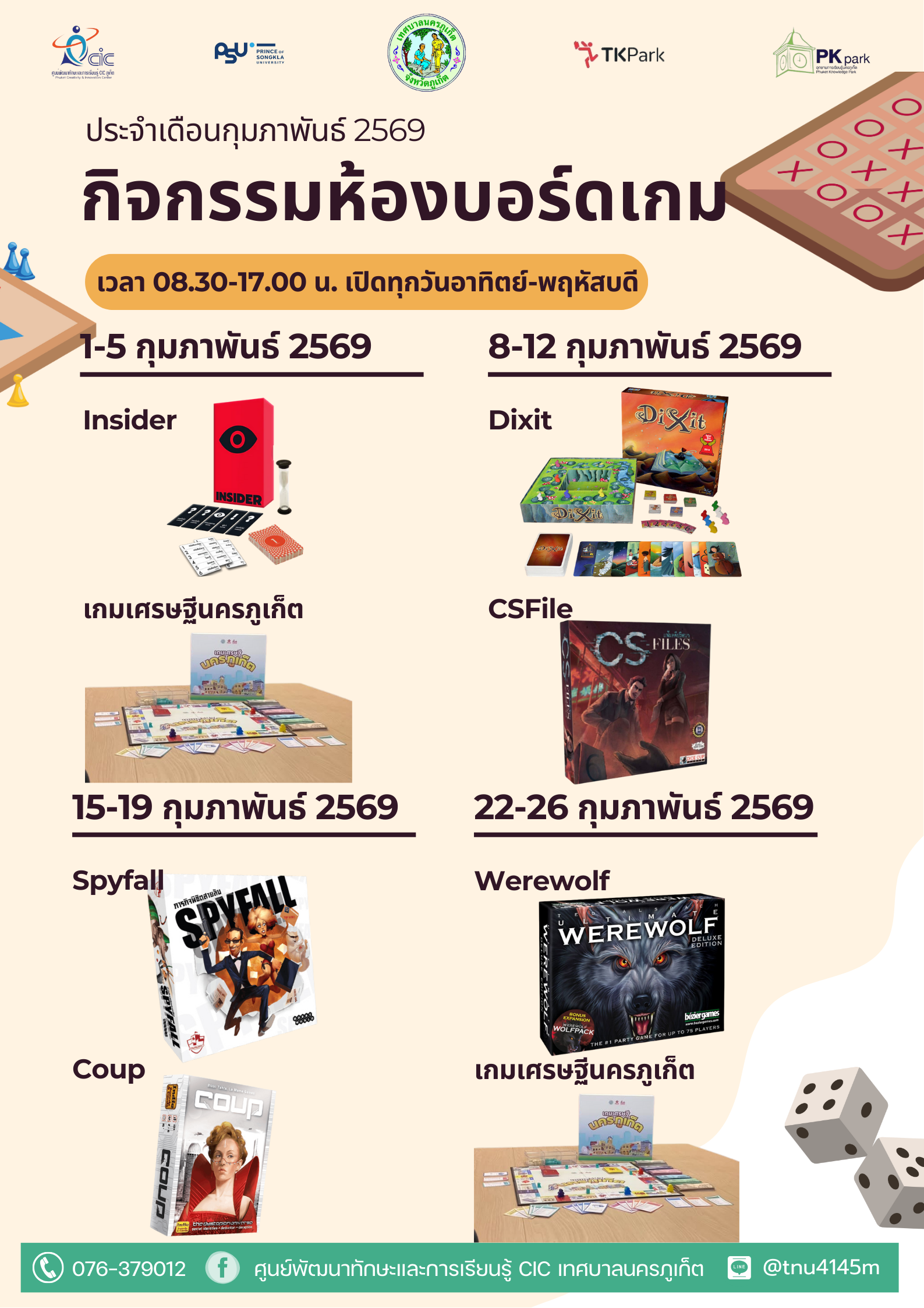 อ่านเพิ่มเติม…กิจกรรมเล่นบอร์ดเกมประจำเดือนกุมภาพันธ์ ณ ห้องบอร์ดเกม CIC ชั้น 1